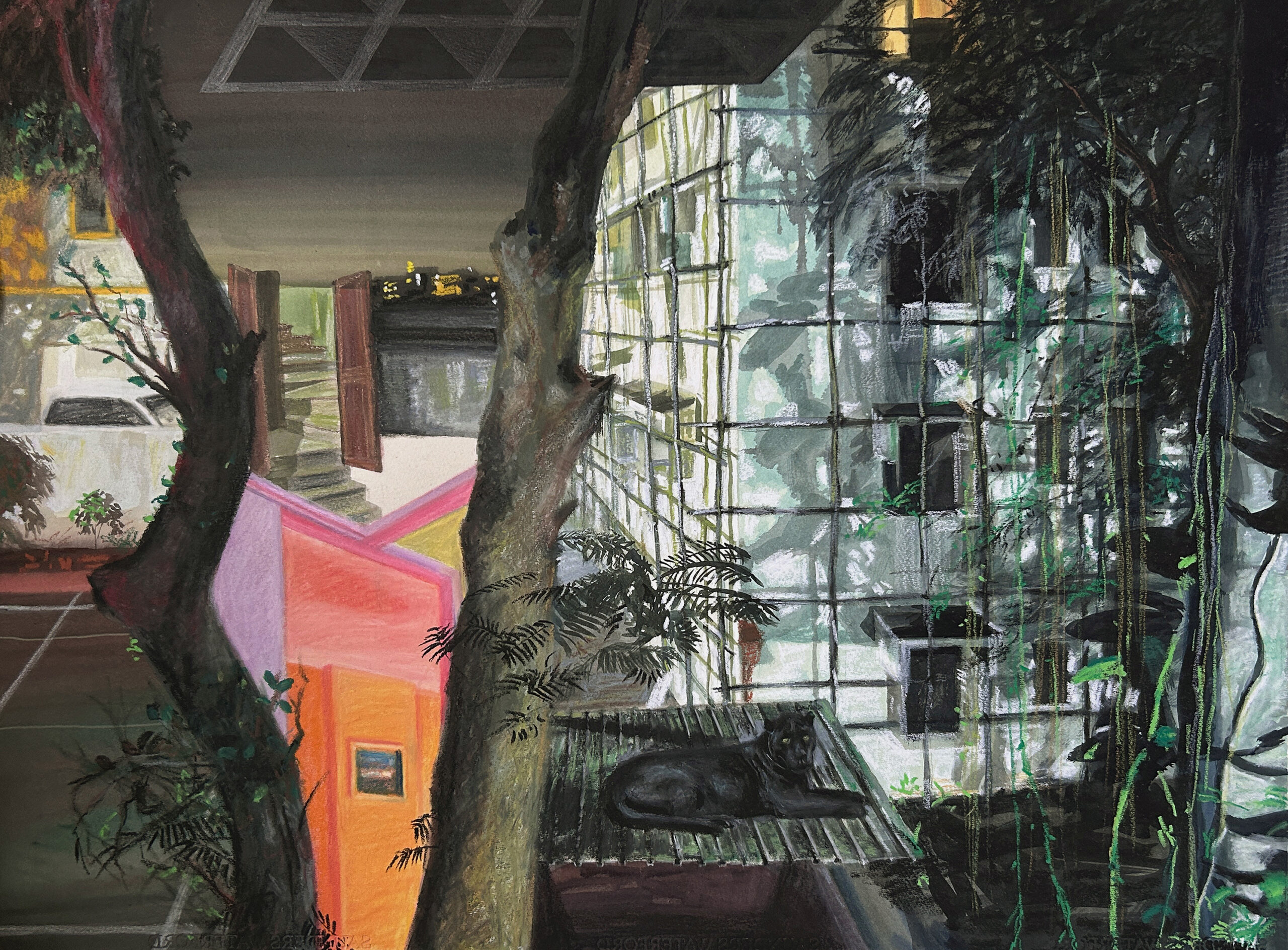 Last Night 2 | 2023 | Ink, Gouache and Oil Pastels on Paper | 21.5 x 29 in