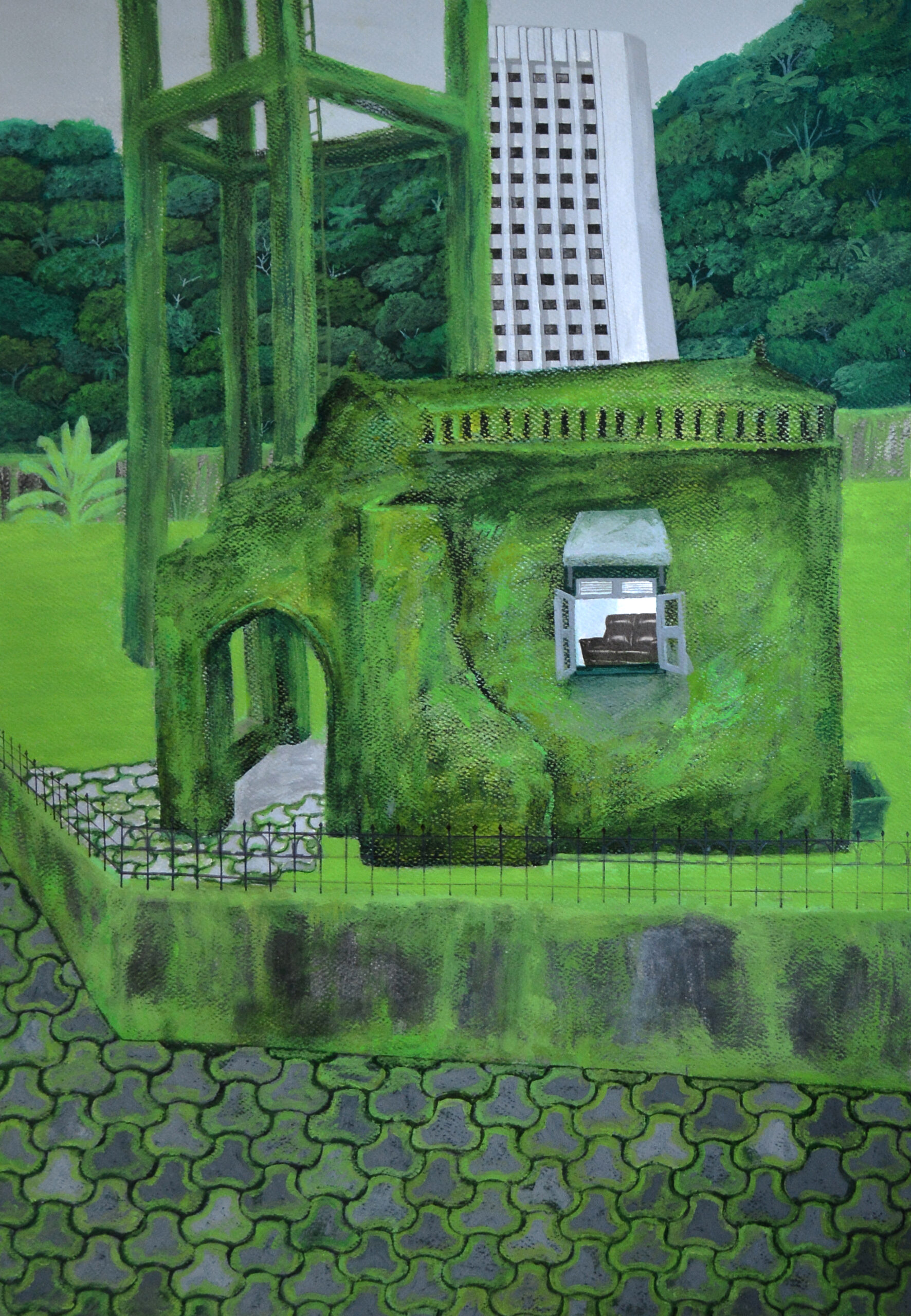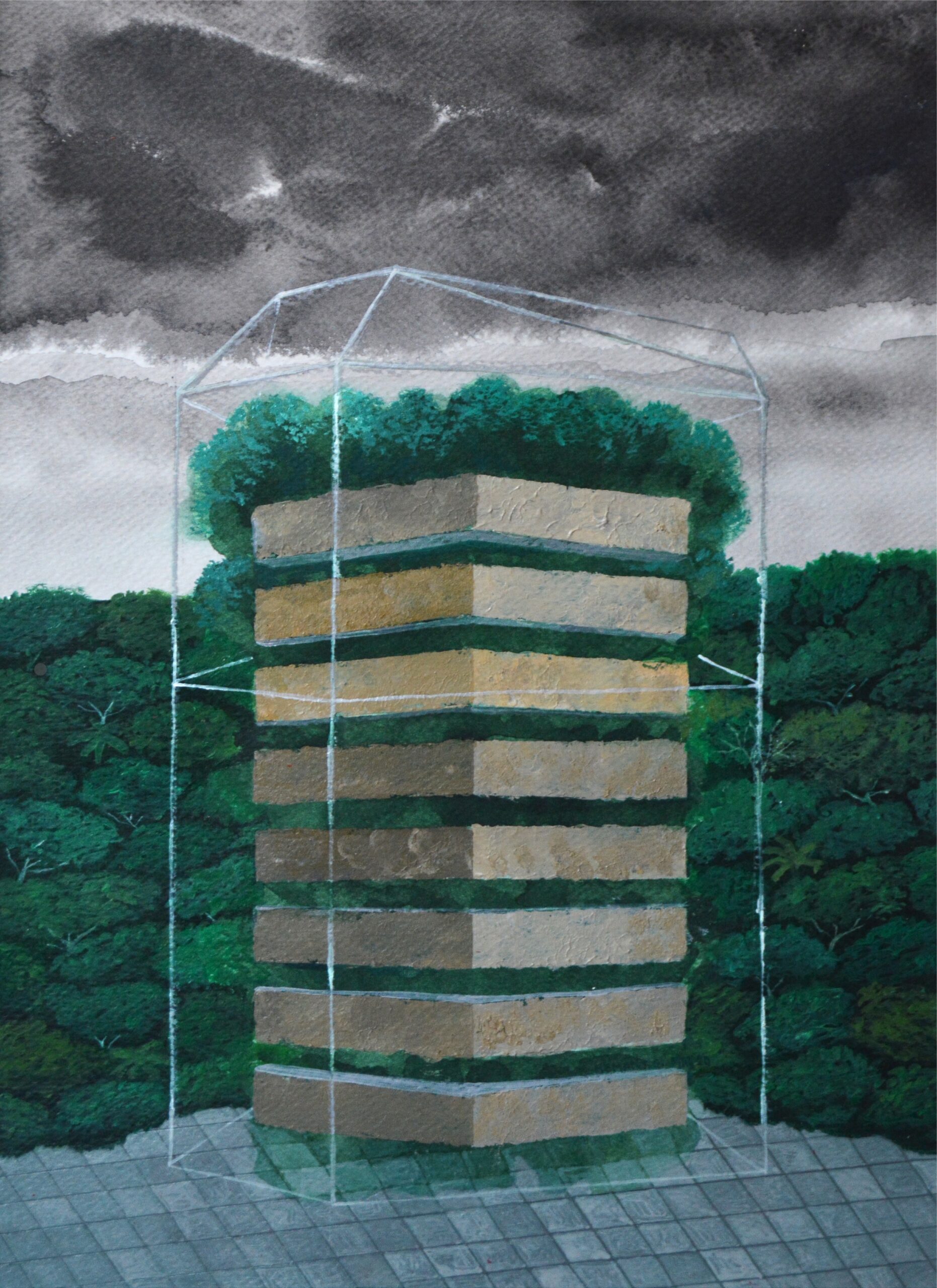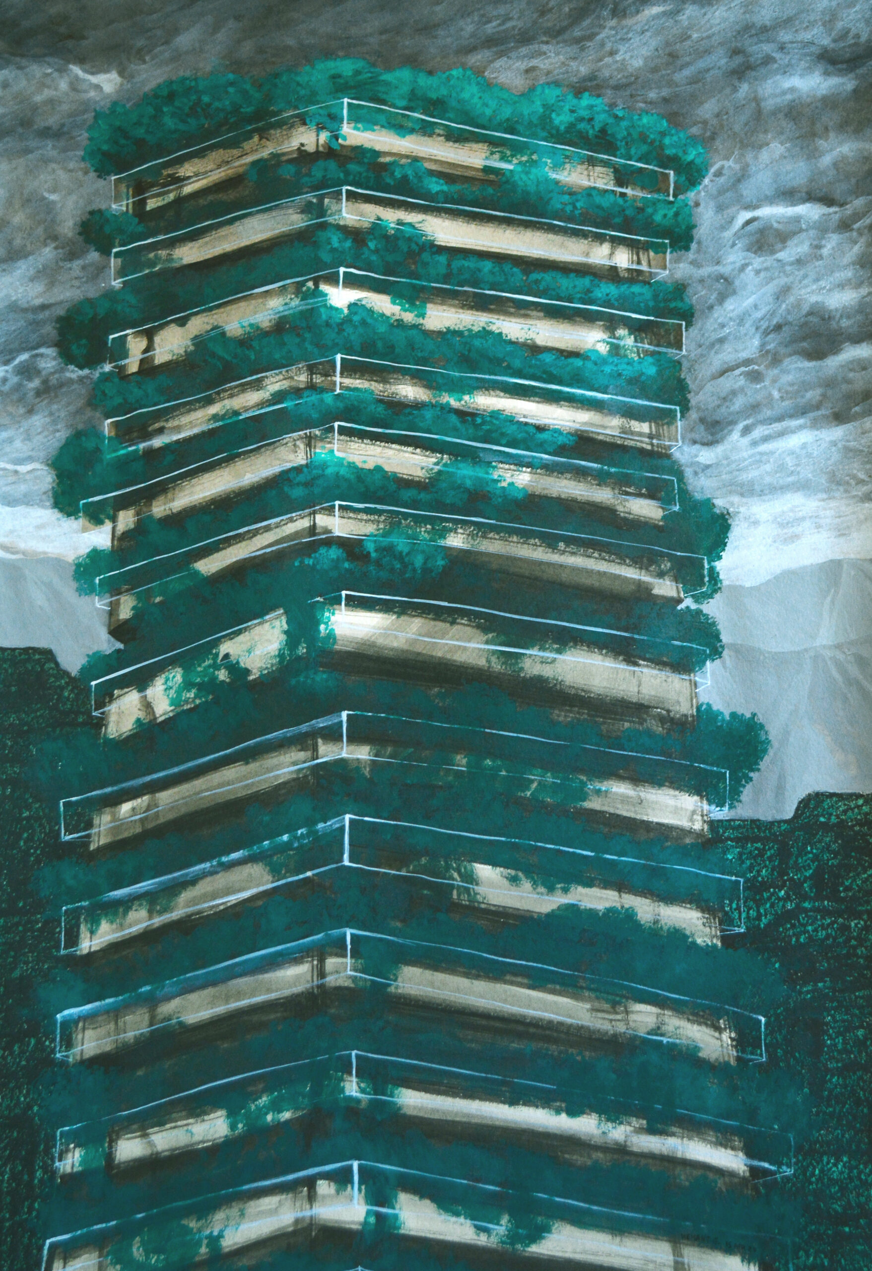 Vertical Forest | 2020 | Ink, Gouache and Oil Pastels on Paper | 26 x 18 in